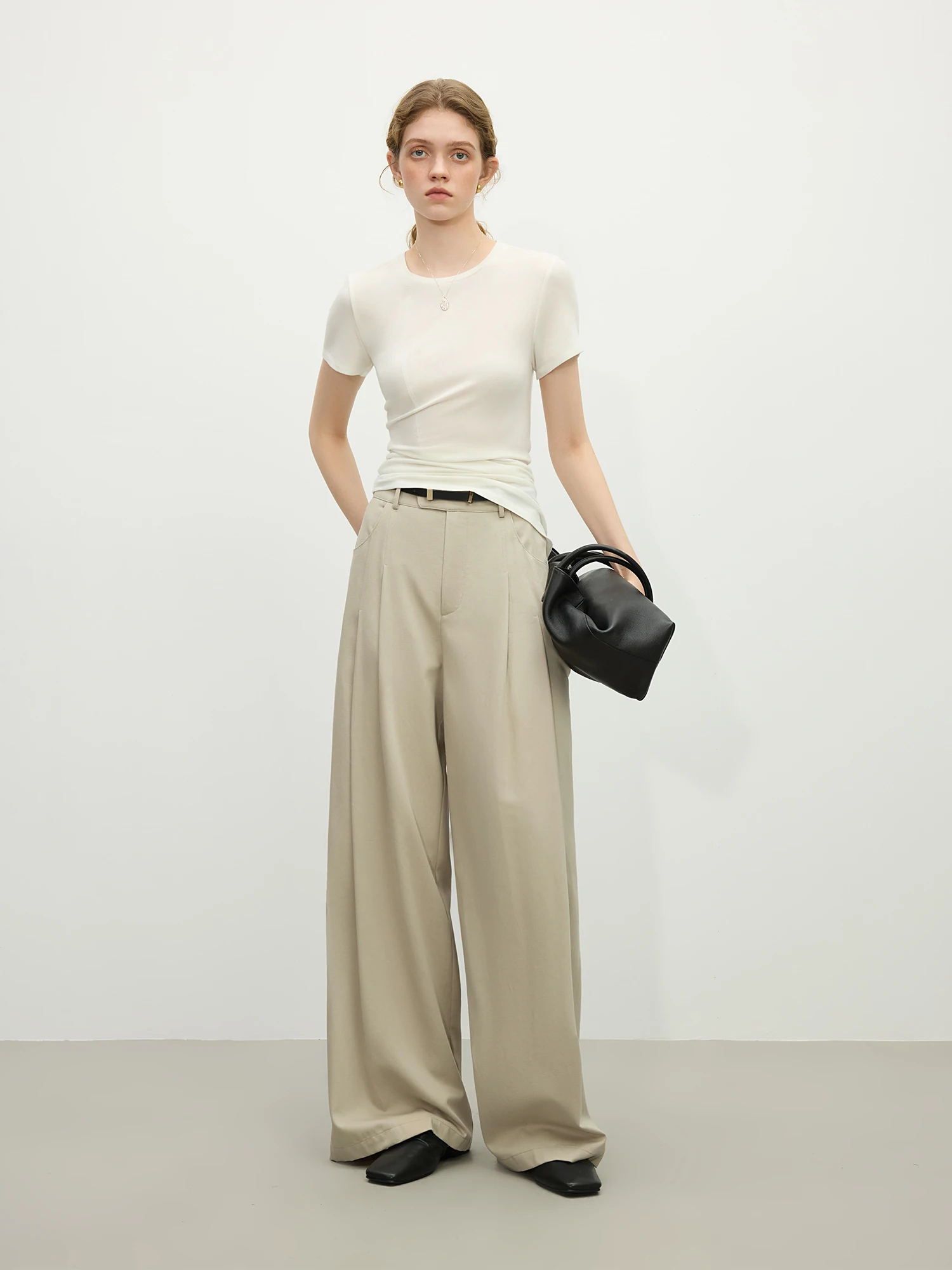 These wide-leg cotton trousers enhance your silhouette, elongate the legs and create a confident, professional look that women over 25 truly appreciate.